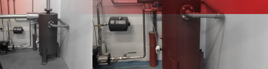 En bundudblæsningstanke er udstyret med en termostat, så man køler kedelvandet inden den kommer i klokakken, så man derved beskytter kloakken.